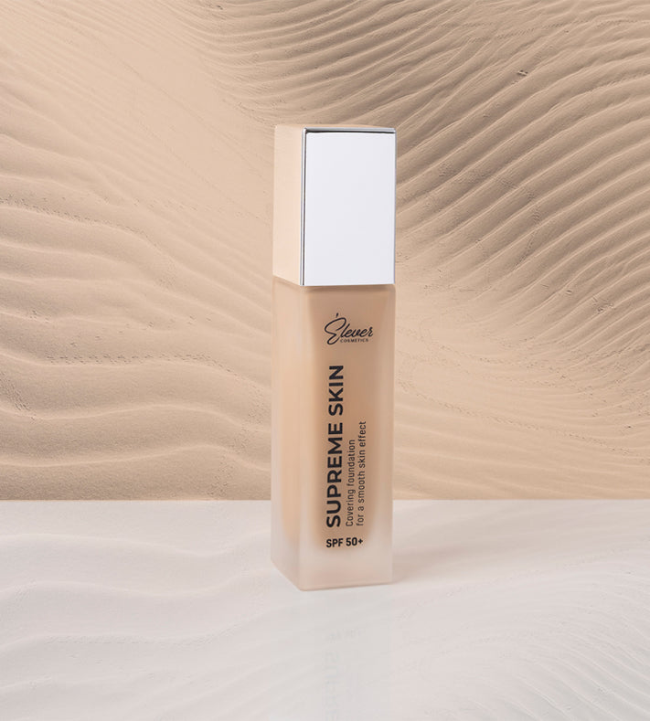 Il fondotinta Supreme Skin offre una coprenza totale, proprietà idratanti e protettive. La sua consistenza leggera permette al fondotinta di scorrere delicatamente sulla pelle senza creare un effetto maschera. Supreme Skin offre una finitura liscia e satinata e consente di ottenere il livello di coprenza desiderato, da medio a totale. Se ritieni che la coprenza non sia sufficiente, applica un altro strato.